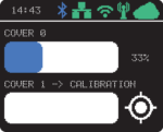 Ползунок, который визуализирует положение чехла. Область уведомлений, отображающая положение крышек в процентах или значок, указывающий на событие (калибровка, препятствие, перенапряжение, перегрузка по току или перегрузка по мощности).